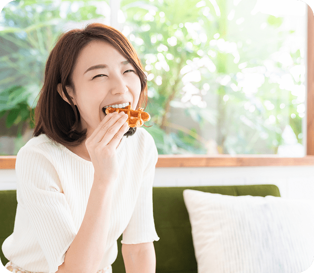 顎の骨に固定されるため、自分の歯に近い感覚で噛めます。